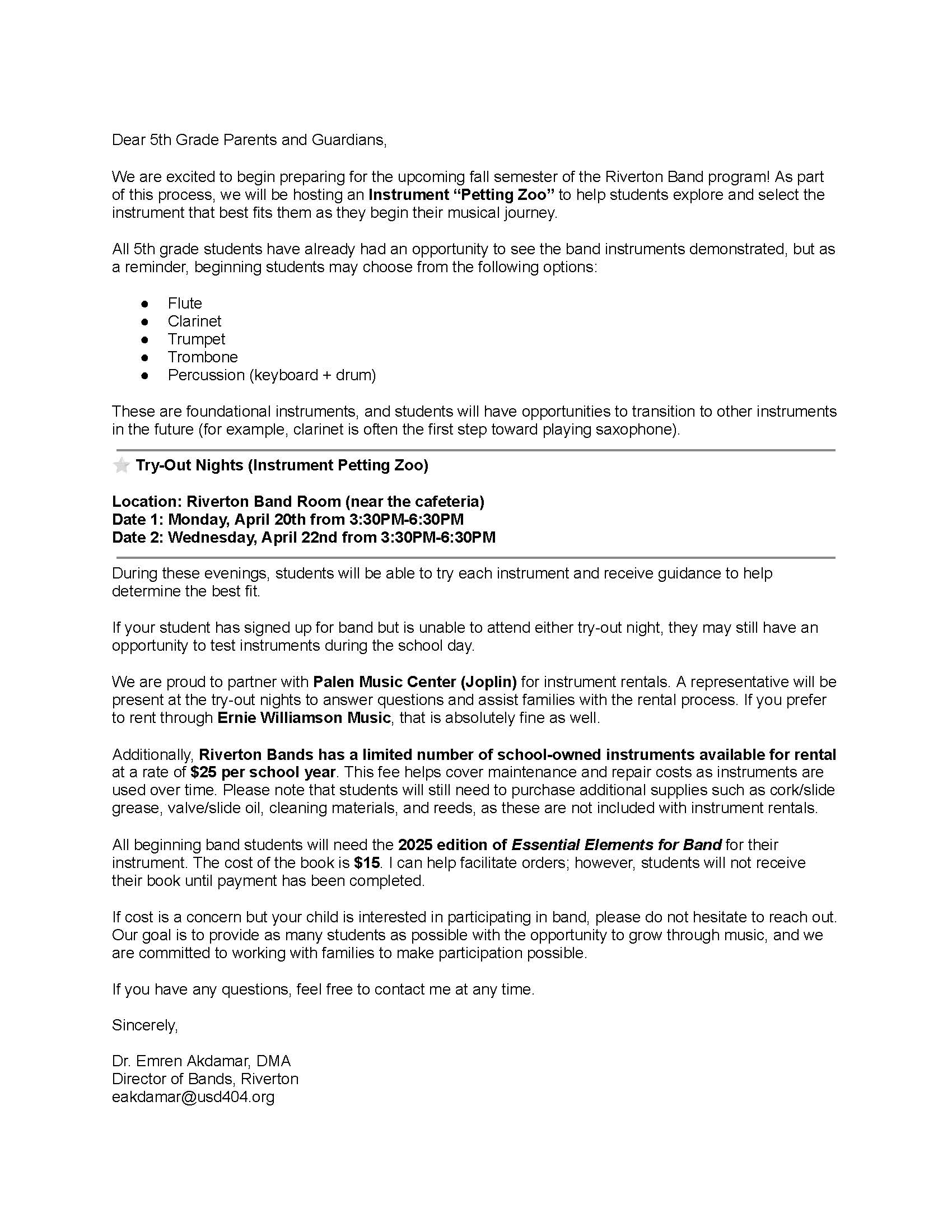 Beginning Band Important Information